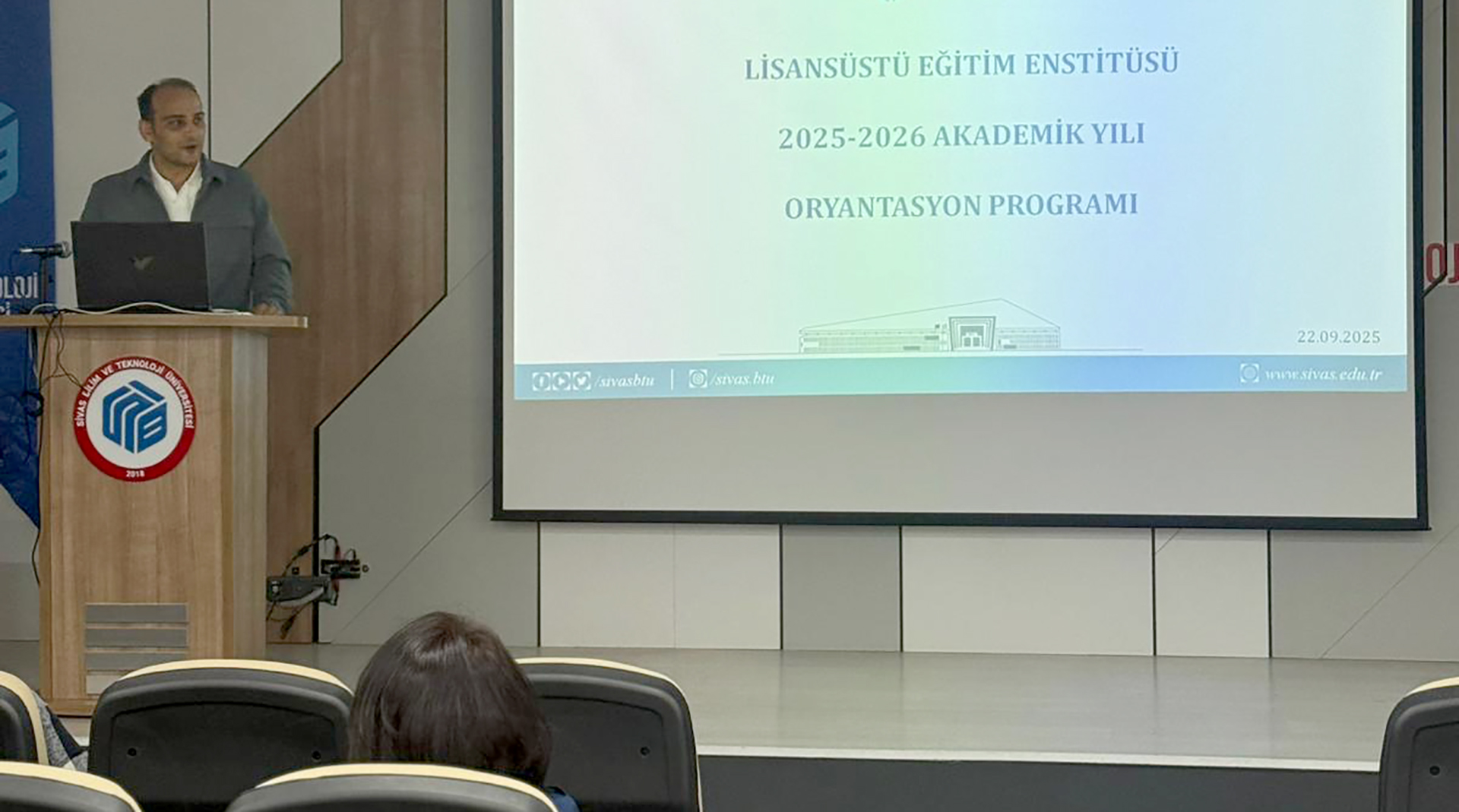 2025-2026 Akademik Yılı Güz Yarıyılı Lisansüstü Eğitim süreçlerine ilişkin bilgilendirmelerin yapıldığı Lisansüstü Oryantasyon Programımız, Enstitü Müdürümüz Doç. Dr. Ali Suat YILDIZ ve Enstitü Sekreterimiz Mustafa ÇİĞDEM’in sunumlarıyla başarıyla gerçekleştirilmiştir. Programa katılım sağlayarak katkıda bulunan değerli öğretim üyelerimize ve öğrencilerimize teşekkür ederiz.